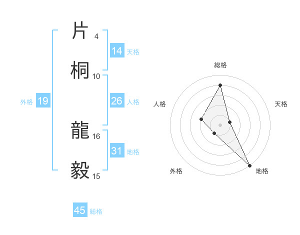 片桐 龍毅さんの総格は45画の4点!