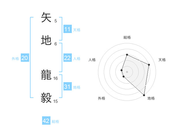 矢地 龍毅さんを姓名の画数から五運を鑑定