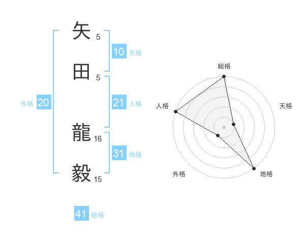 矢田 龍毅さんの地格は31画の5点!