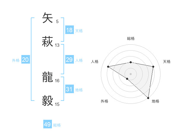矢萩 龍毅さんの地格は31画の5点!