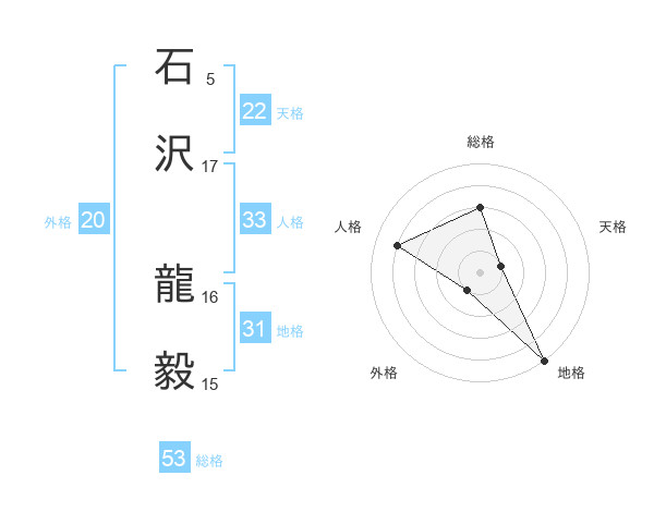 石沢 龍毅さんの総格は53画の3点!