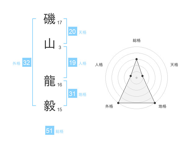 磯山 龍毅さんを姓名の画数から五運を鑑定