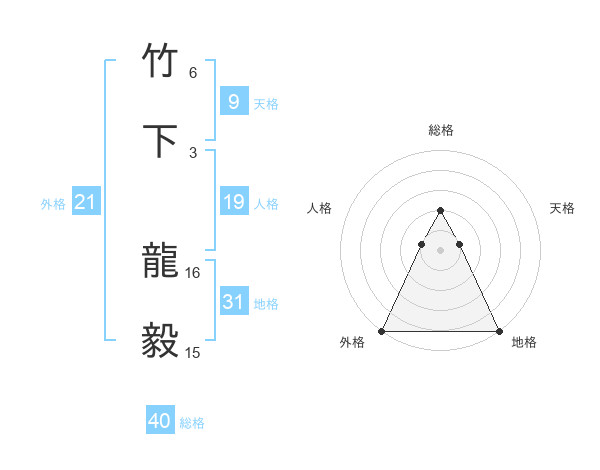 竹下 龍毅さんの地格は31画の5点!
