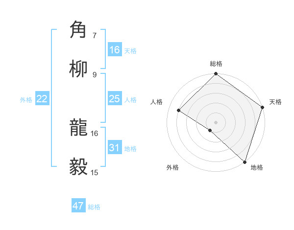 角柳 龍毅さんを姓名の画数から五運を鑑定