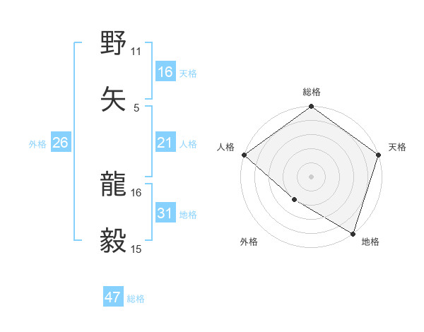 野矢 龍毅さんの総格は47画の5点!