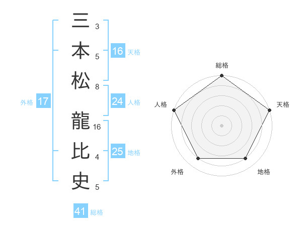 三本松 龍比史さんを姓名の画数から五運を鑑定