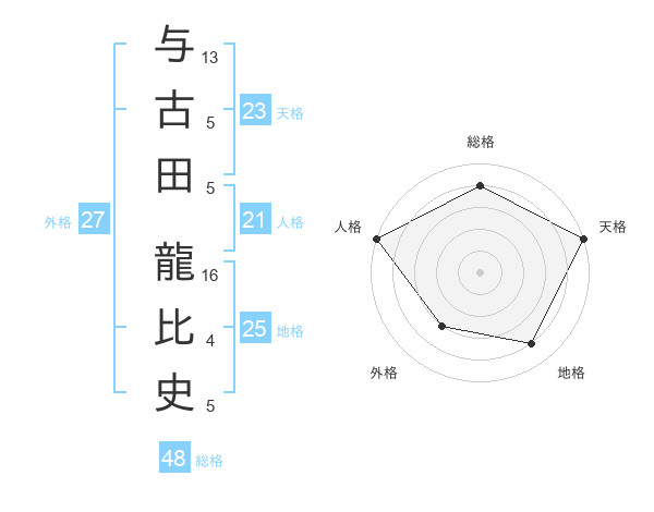 与古田 龍比史さんを姓名の画数から五運を鑑定