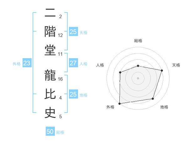 二階堂 龍比史さんを姓名の画数から五運を鑑定