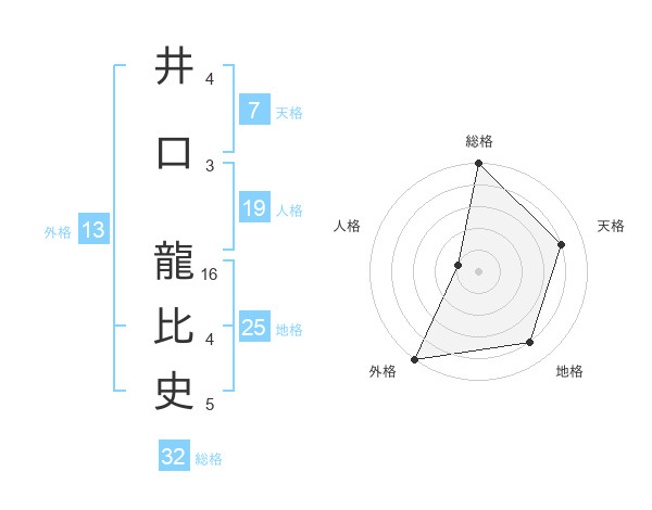 井口 龍比史さんを姓名の画数から五運を鑑定