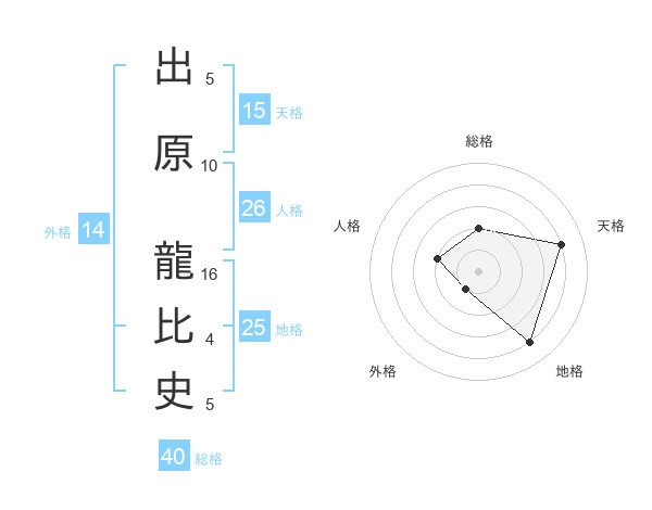 出原 龍比史さんを姓名の画数から五運を鑑定