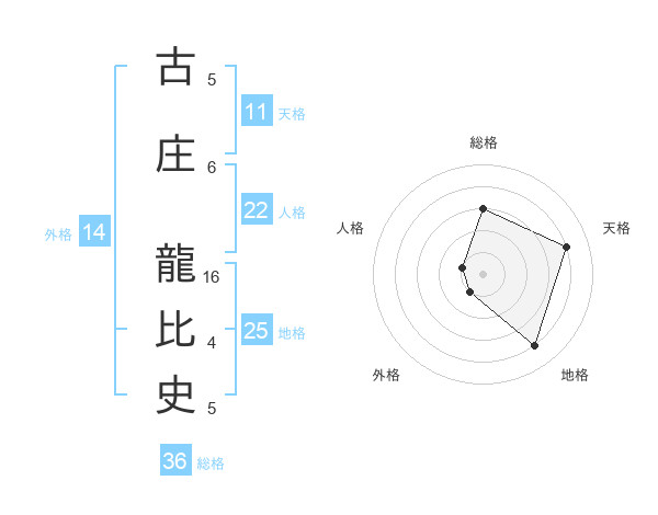 古庄 龍比史さんの天格は11画の4点!