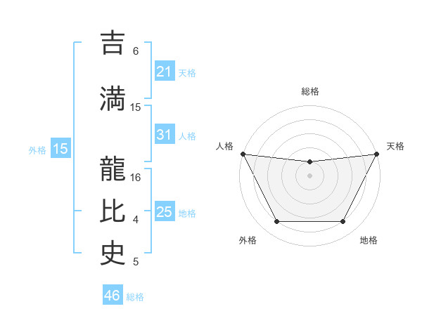 吉満 龍比史さんの天格は21画の5点!