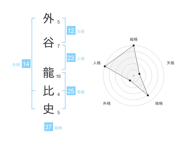 外谷 龍比史さんの総格は37画の5点!