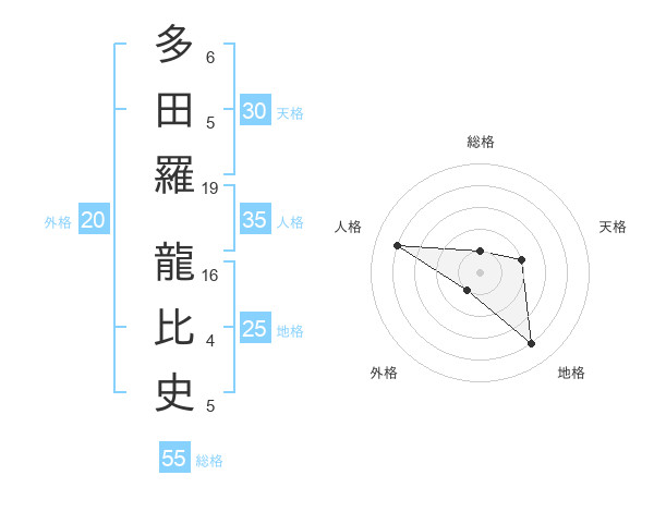 多田羅 龍比史さんを姓名の画数から五運を鑑定