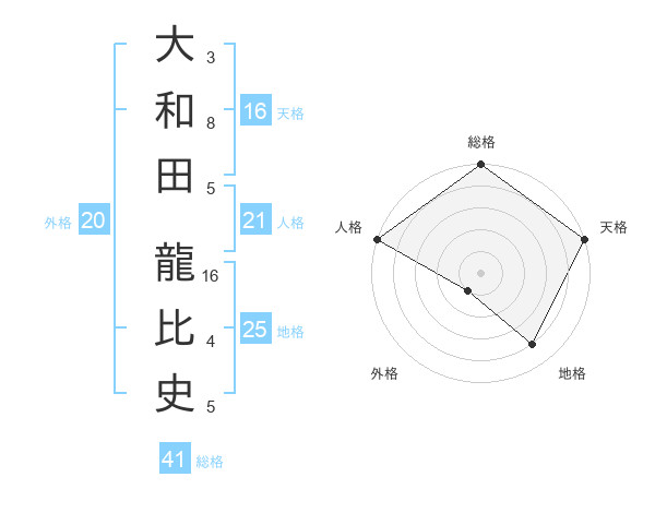 大和田 龍比史さんの天格は16画の5点!