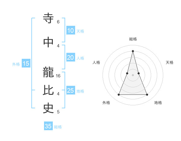 寺中 龍比史さんの総格は35画の4点!