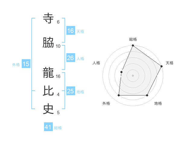 寺脇 龍比史さんを姓名の画数から五運を鑑定
