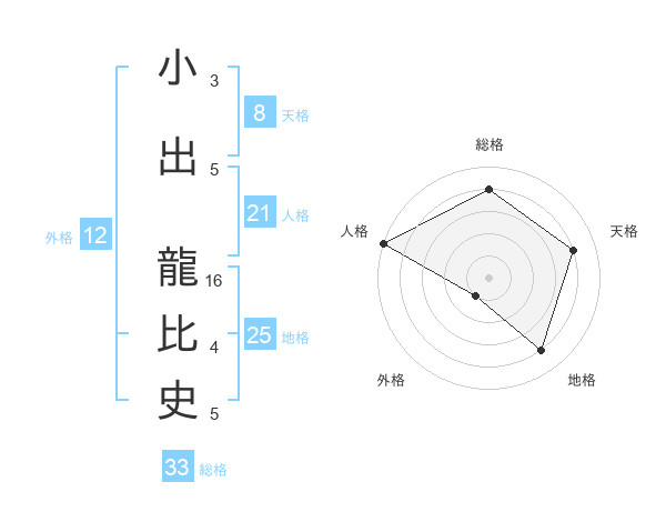 小出 龍比史さんを姓名の画数から五運を鑑定