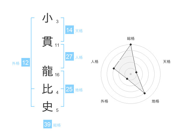 小貫 龍比史さんを姓名の画数から五運を鑑定