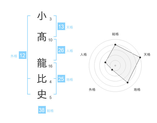 小髙 龍比史さんの天格は13画の5点!