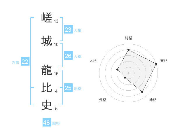 嵯城 龍比史さんの天格は23画の5点!