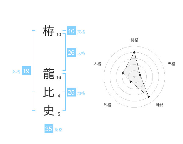 栫 龍比史さんの総格は35画の4点!