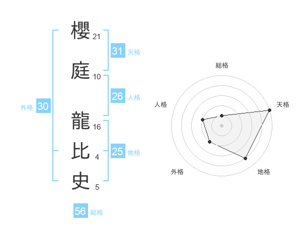 櫻庭 龍比史さんを姓名の画数から五運を鑑定