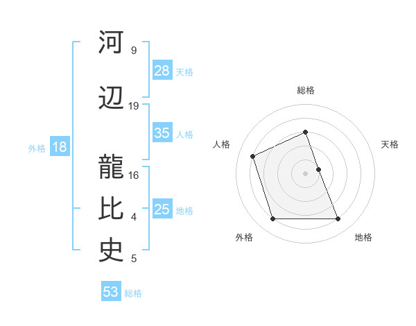 河辺 龍比史さんを姓名の画数から五運を鑑定