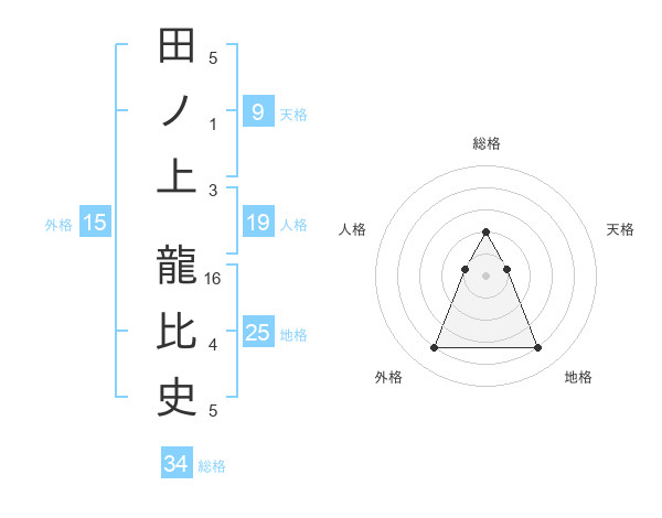 田ノ上 龍比史さんを姓名の画数から五運を鑑定