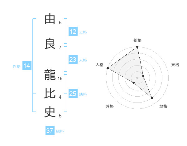 由良 龍比史さんを姓名の画数から五運を鑑定