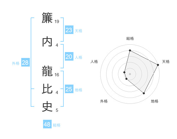 簾内 龍比史さんの天格は23画の5点!