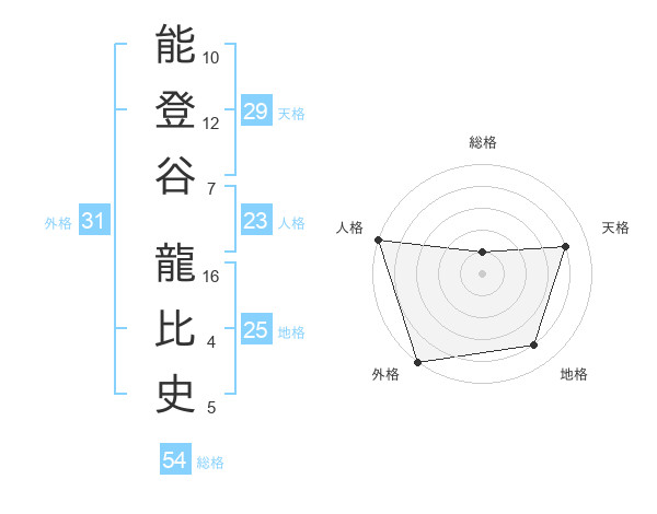 能登谷 龍比史さんを姓名の画数から五運を鑑定