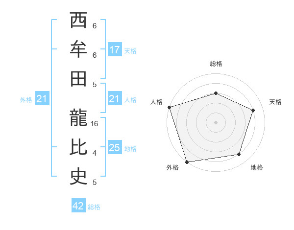 西牟田 龍比史さんを姓名の画数から五運を鑑定