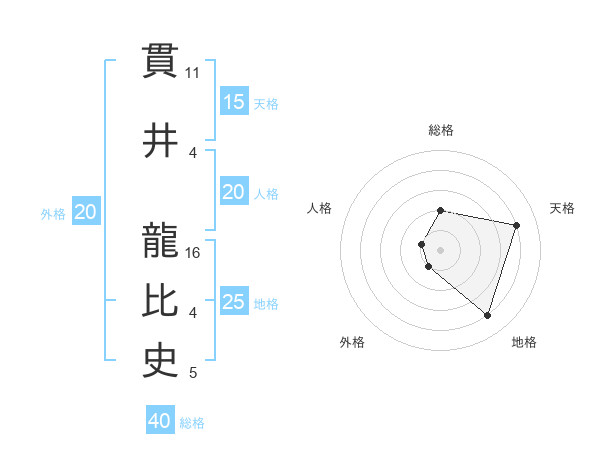 貫井 龍比史さんを姓名の画数から五運を鑑定
