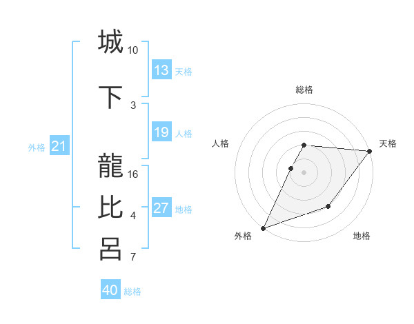 城下 龍比呂さんを姓名の画数から五運を鑑定