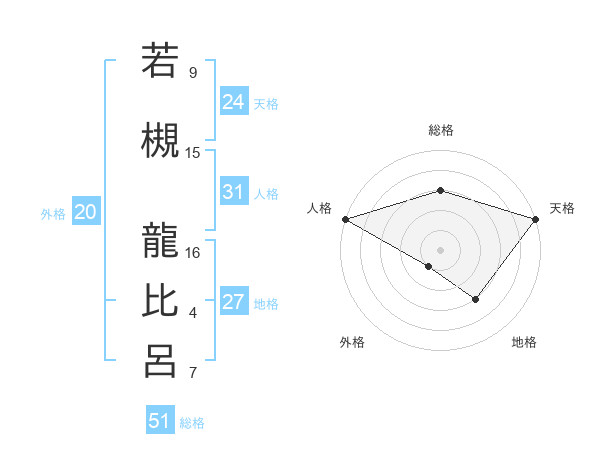 若槻 龍比呂さんを姓名の画数から五運を鑑定