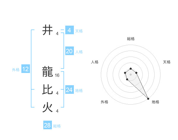 井 龍比火さんの総格は28画の1点!