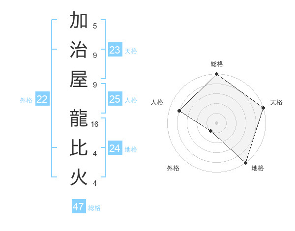 加治屋 龍比火さんの総格は47画の5点!