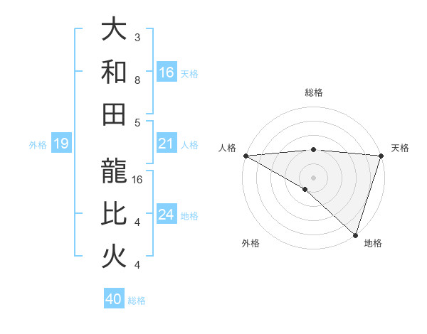 大和田 龍比火さんの総格は40画の2点!