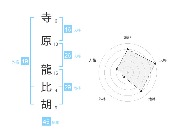 寺原 龍比胡さんの天格は16画の5点!