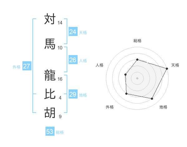 対馬 龍比胡さんを姓名の画数から五運を鑑定