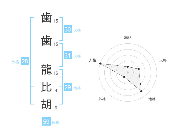 歯歯 龍比胡さんの総格は59画の1点!