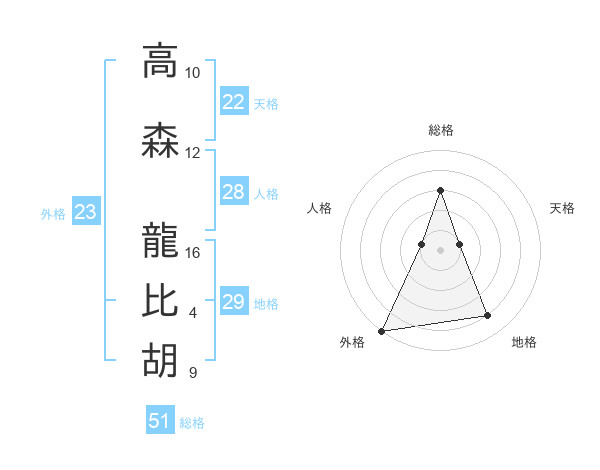 高森 龍比胡さんの総格は51画の3点!
