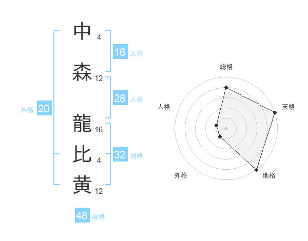 中森 龍比黄さんを姓名の画数から五運を鑑定