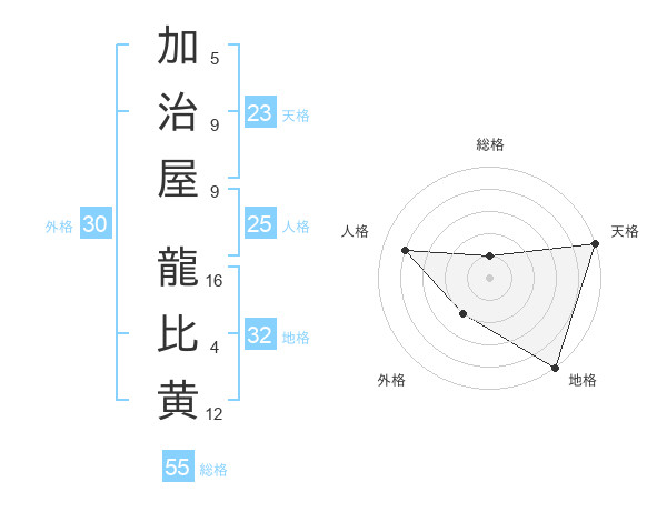 加治屋 龍比黄さんを姓名の画数から五運を鑑定