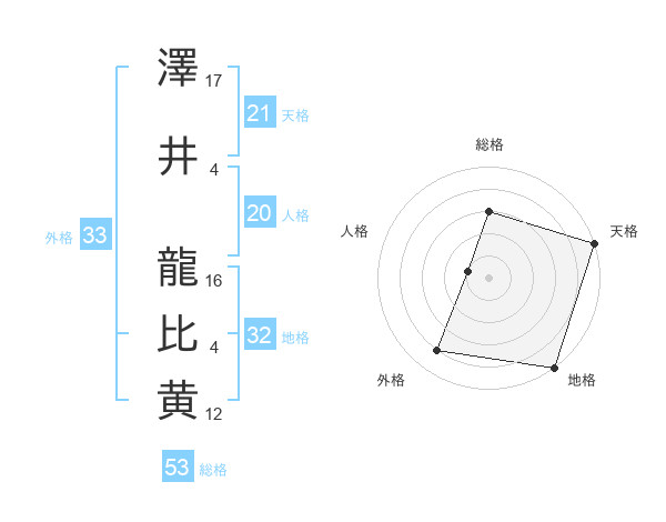 澤井 龍比黄さんの外格は33画の4点