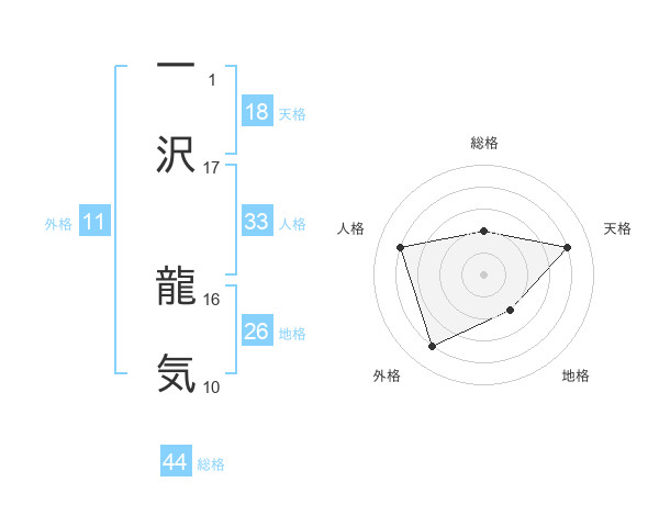 一沢 龍気さんを姓名の画数から五運を鑑定