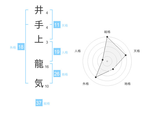 井手上 龍気さんの総格は37画の5点!
