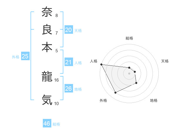 奈良本 龍気さんの総格は46画の1点!