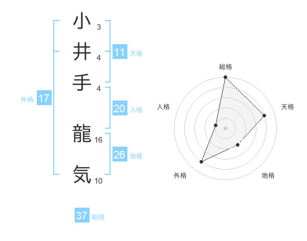 小井手 龍気さんの総格は37画の5点!